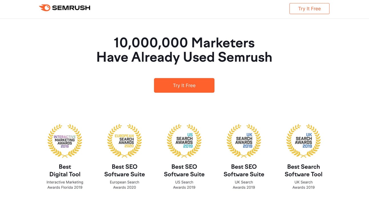 Öncelikle, "10,000,000 Marketers Have Already Used SEMrush" ifadesiyle, hizmetlerinin geniş bir profesyonel kitlesi tarafından tercih edildiğini öne sürerek güvenilirliklerini ortaya koymuşlar